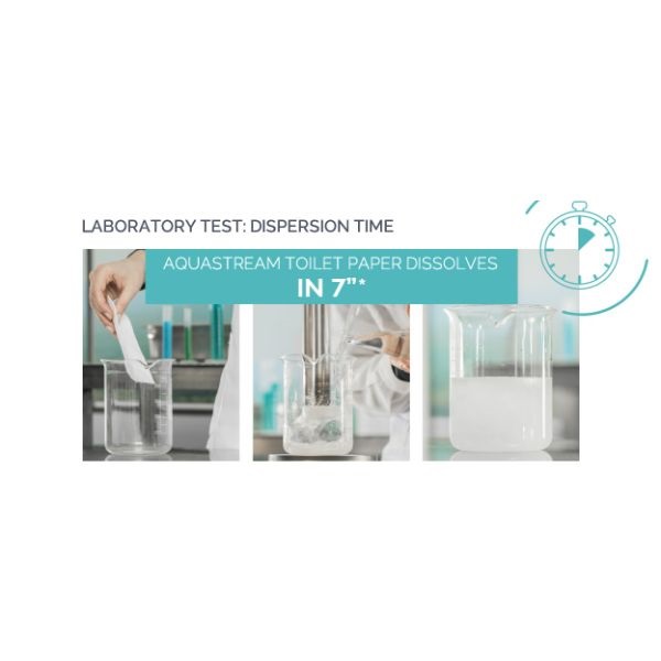 Inovativna linija papirne konfekcije, Aquastream nudi rešenje za cevi koje se lako zapuše. Ubrusi i toaletni papiri se rastvaraju u vodi za samo 7 sekundi.